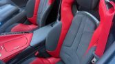 La dénomination intérieure rouge et noir pour la Corvette C8 est le « Jet Black / Adrénaline Red » qui combine des sièges en cuir rouge vif avec des garnitures noires et des surpiqûres rouges pour un look sportif, cuir & Alcantara.